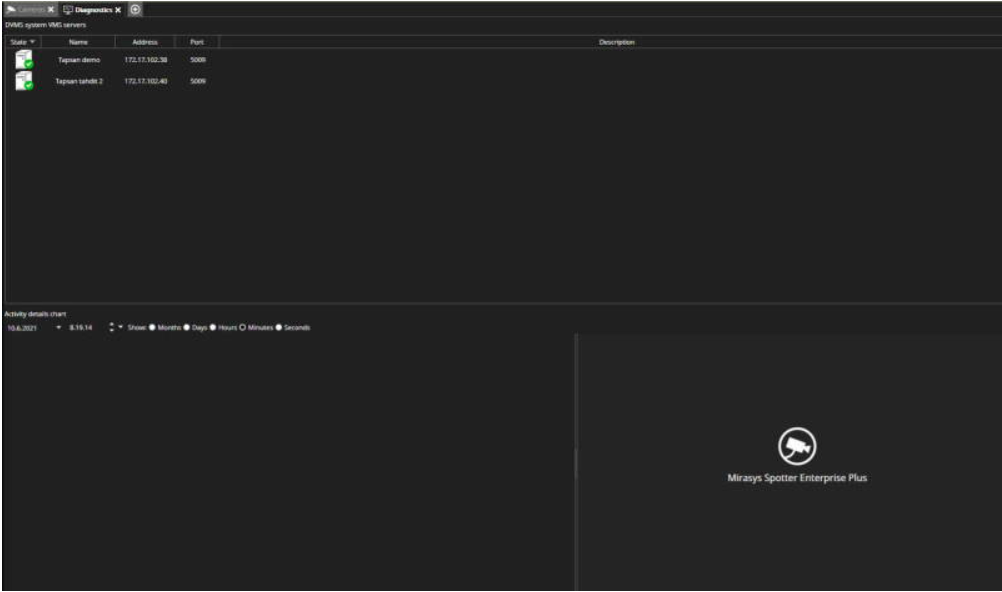 Diagnostic shows the name, IP address and the status of the VMS servers, which are connected to the master server