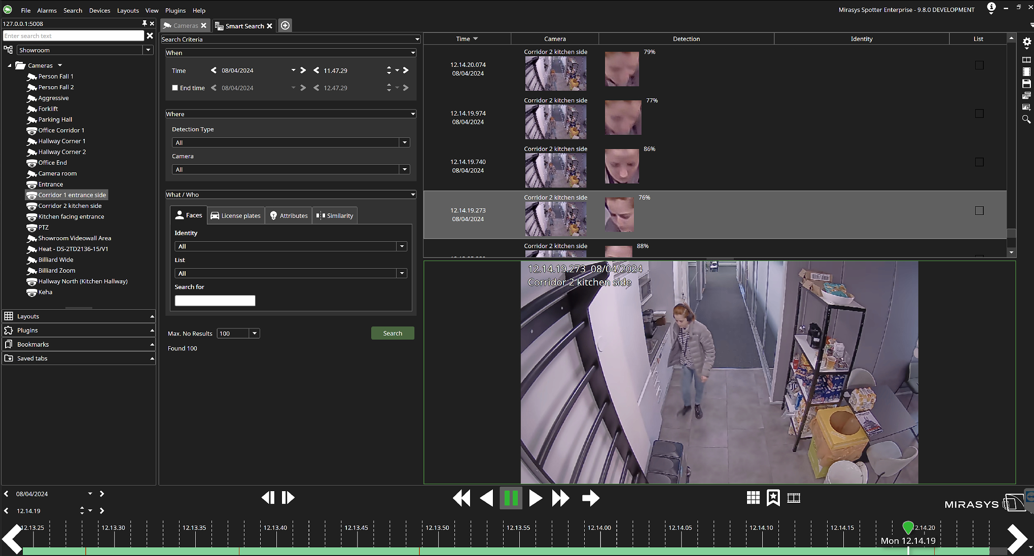 View the search results displaying the Time, Camera, Detection, Identity and List used.