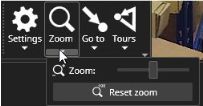 The zoom settings menu allows controlling the camera zoom. The camera zoom can also be controlled from the keyboard or the mouse wheel.