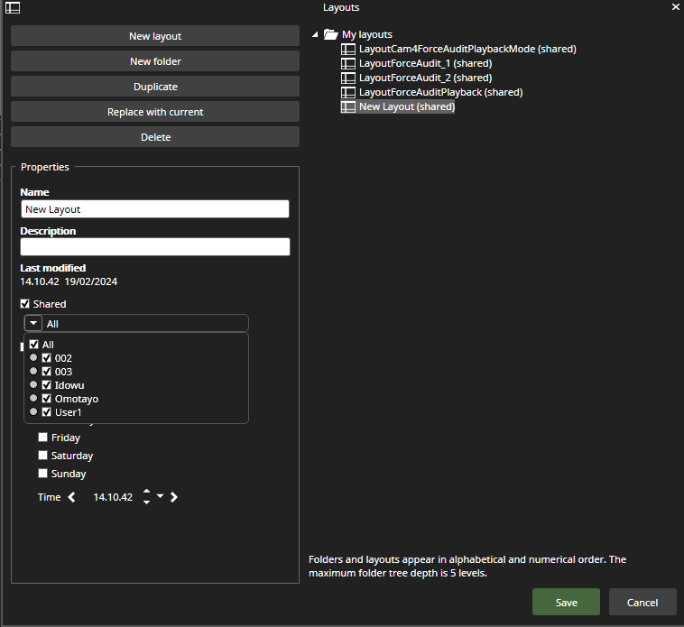 User can create a layout in Spotter under Layouts > New Layout. Layout(s) can be shared among other user in the same user group or other user groups if they have the same profile.