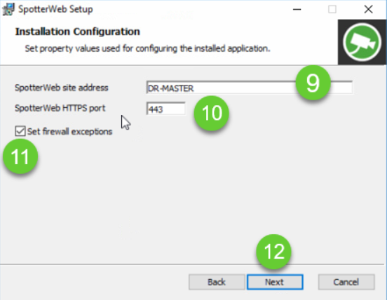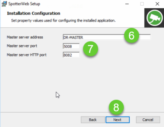 Set the SpotterWeb site address(the computer name of the master server PC)