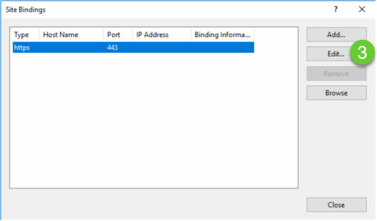5. Valitse Select ja etsi Let´s encryprillä tehty sertifikaatti