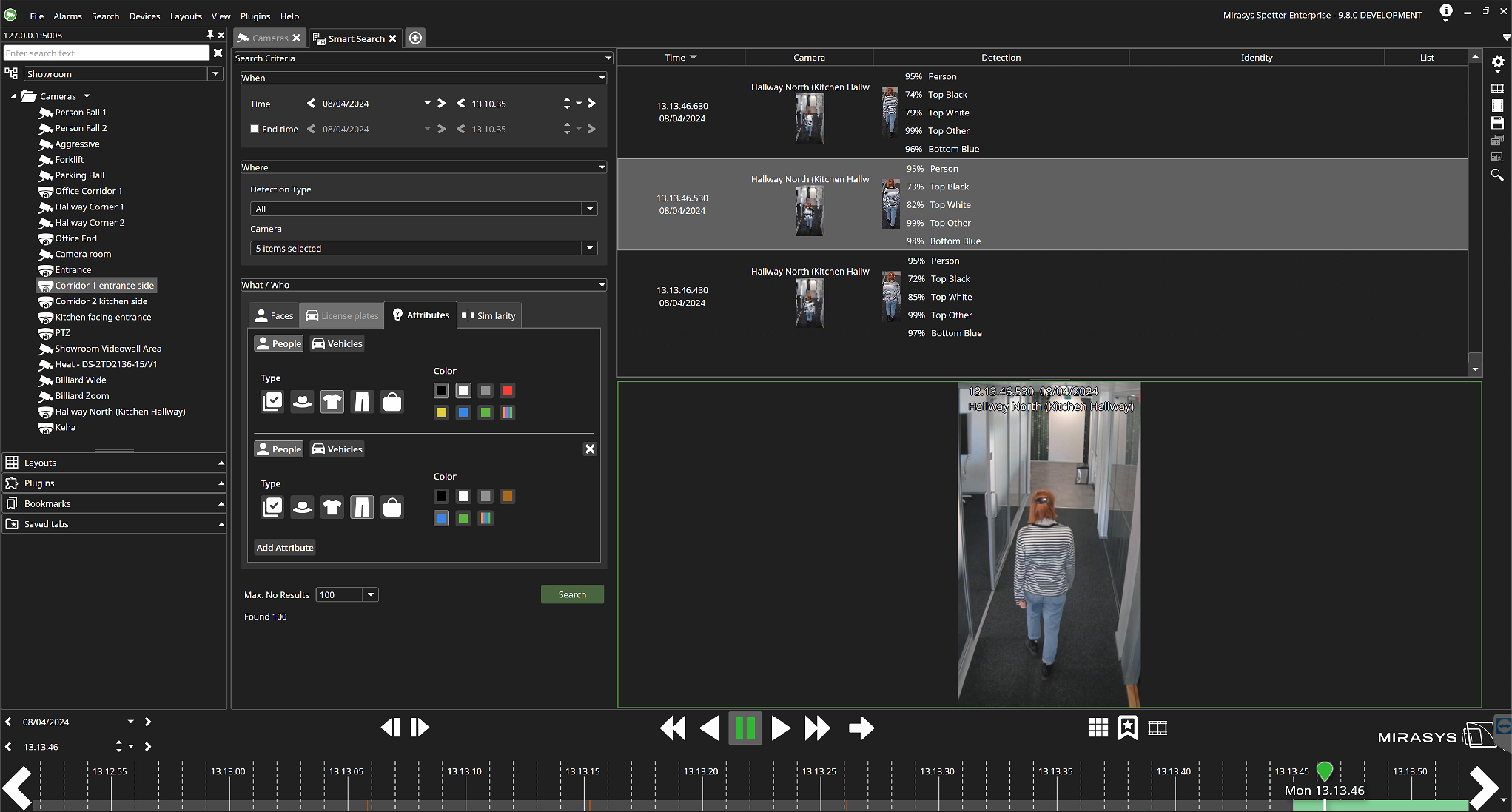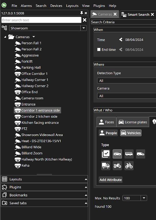 We are introducing Object Recognition Search to our VMS. Operators can now search recordings for attributes for both persons and vehicles. The object recognition search searches by the following criteria: where (which cameras), when (time frame), and what (humans or vehicles and their attributes).